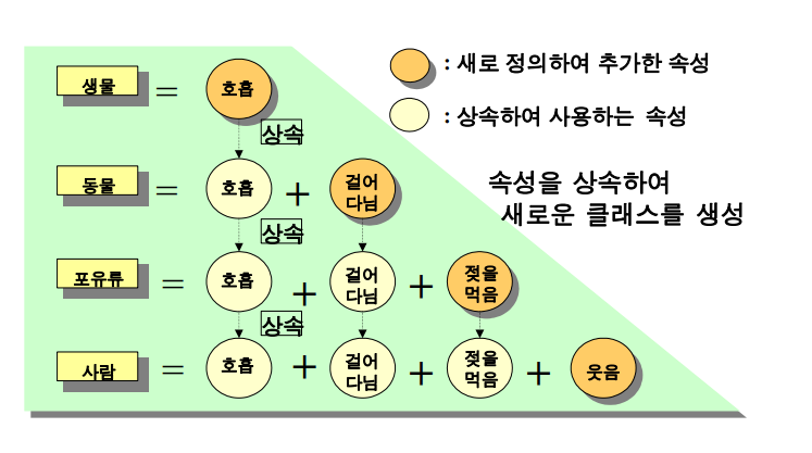 - 계층적으로 상속을 받게 되면 기존의 클래스를 그대로 사용할 수 있는 장점이 있고 또한 새로운 클래스를 보다 쉽게 만들 수 있다.
