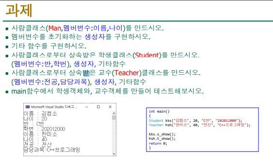 Man(string n, int a) { //멤버변수를 초기화하는 생성자를 구현하시오.